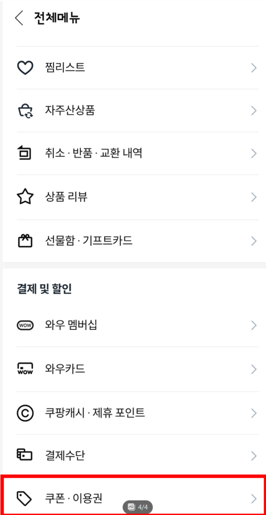 - ❗ 마이쿠팡 메뉴에서 '쿠폰' 탭을 선택하여 확인 가능합니다.