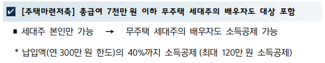 - ✅ 청약 공제: 배우자 명의 납입액(최대 300만 원)의 40% 공제 가능