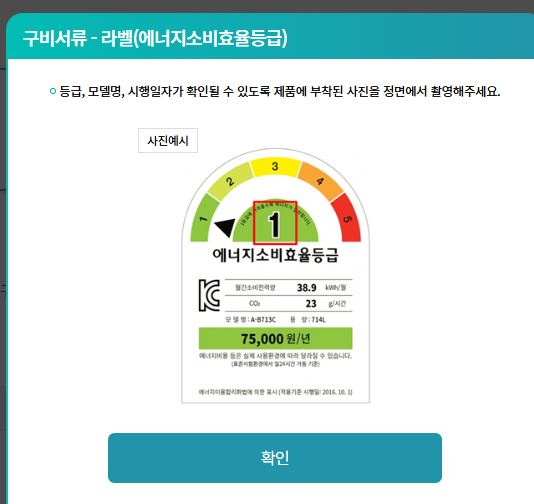 - ❗ 기기 사진: 라벨 사진(등급) 및 명판 사진(제조번호) 각 1장씩
