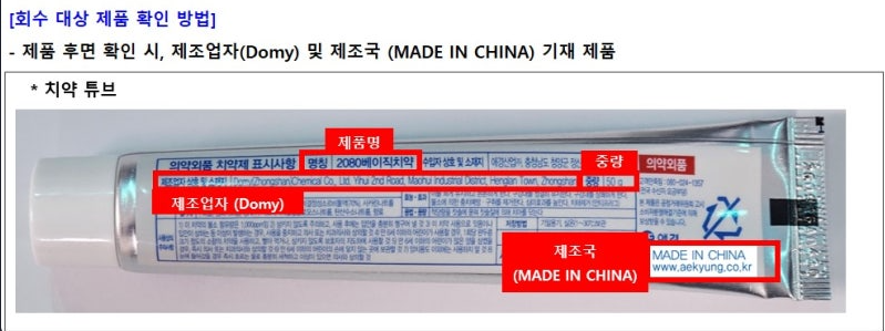 가장 확실한 방법은 치약 튜브 뒷면의 작은 글씨를 확인하는 것입니다. 제품 이름뿐만 아니라 제조국과 제조원을 확인해야 정확합니다.