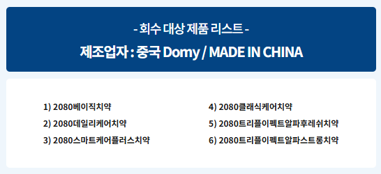 [2080 치약 리콜 핵심 정보]
